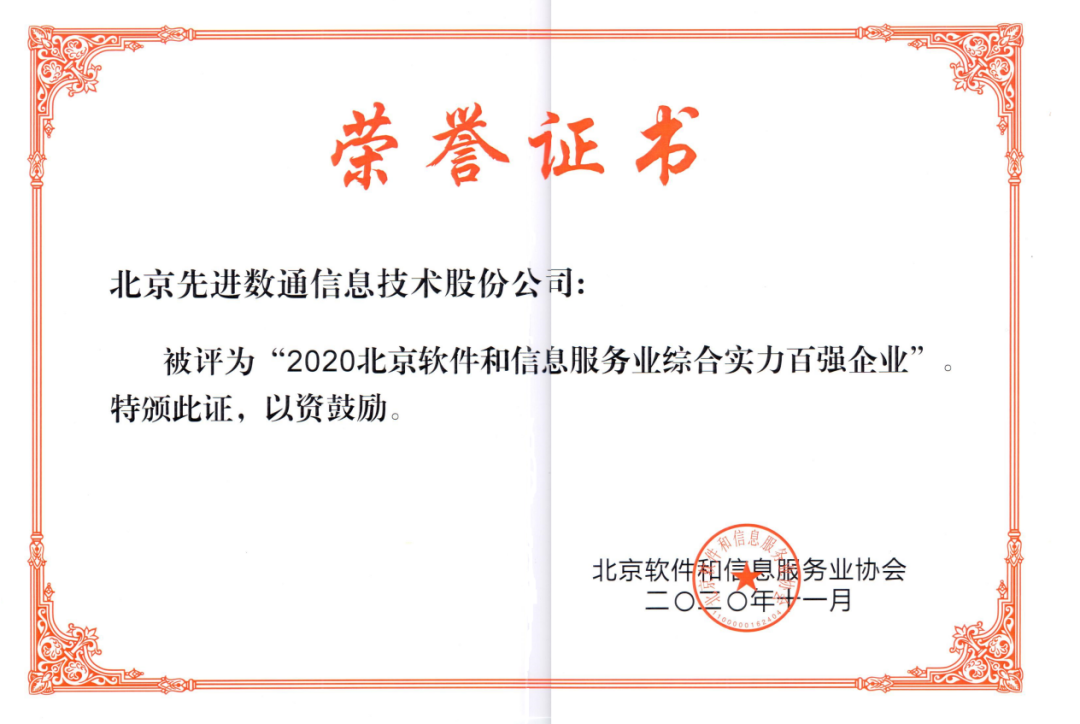 顺发配资成功入选“2020北京软件和信息服务业信息综合实力百强”企业,并获评2020北京软件企业核心竞争力规模型企业。